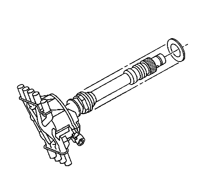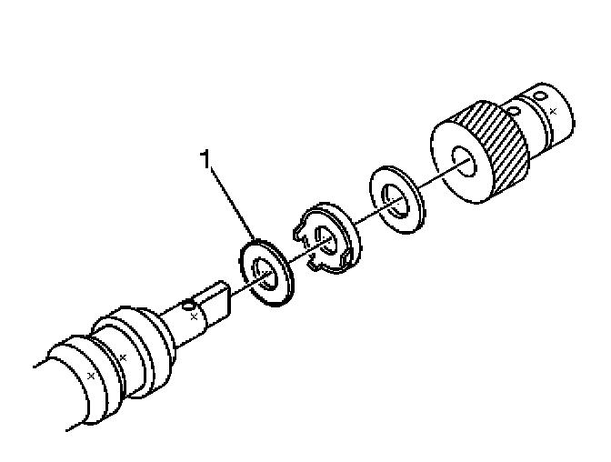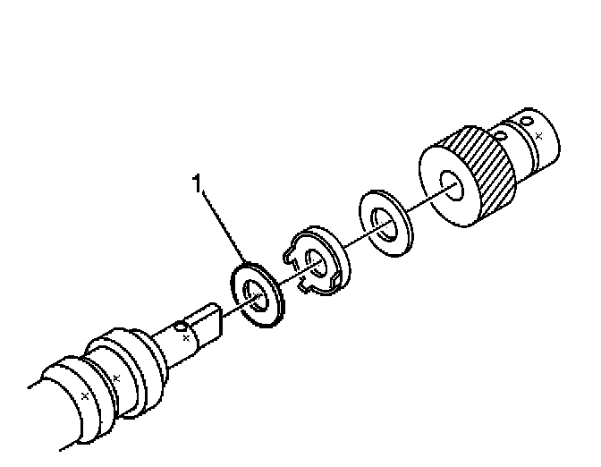 7. Install the shim washer (1) on the bottom of the distributor shaft.