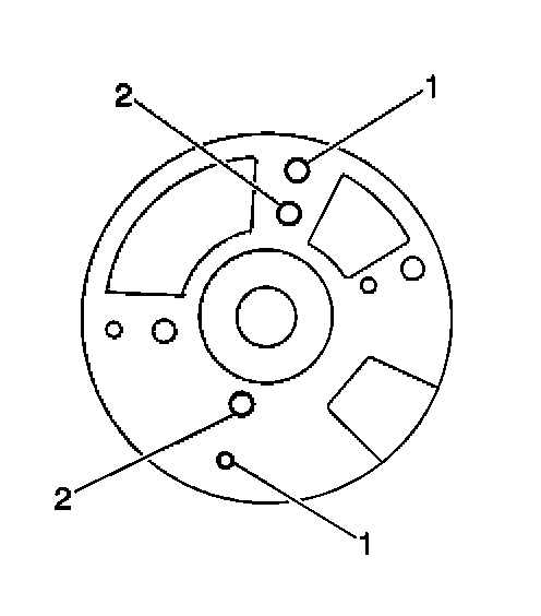 11. Align the rotor segment as shown for a V6 engine (1) or V8 engine (2).