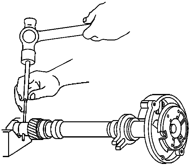 14. Support the distributor drive gear in a V-block or similar fixture.