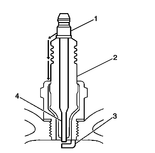 - Inspect for the correct spark plug torque. Refer to Ignition System Specifications. Insufficient torque can prevent correct spark plug operation. An over torqued spark plug, causes the insulator (2) to crack.