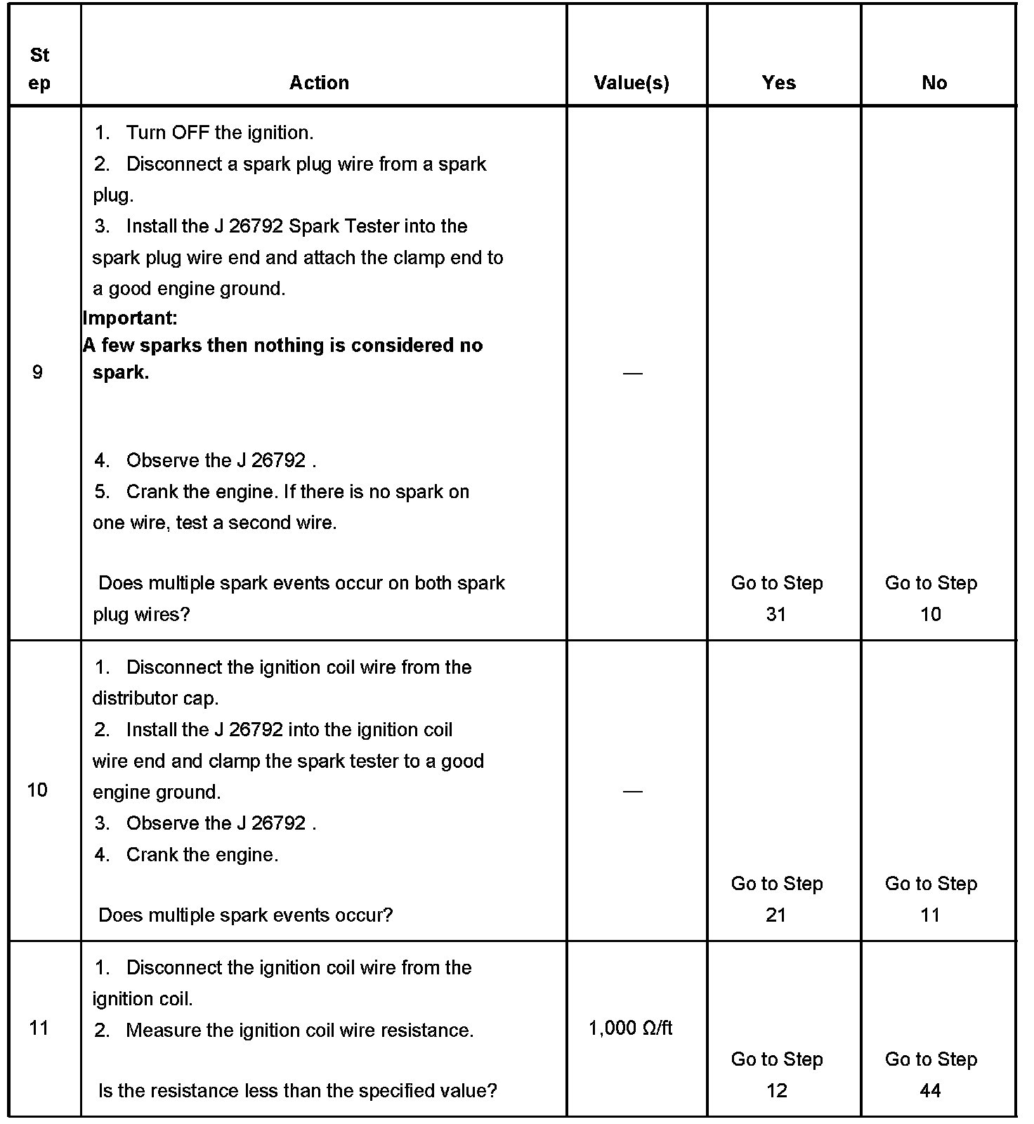 9. This step is testing for spark output at more than one spark plug wire. The J-26792 requires a minimum of 25,000 volts to operate.