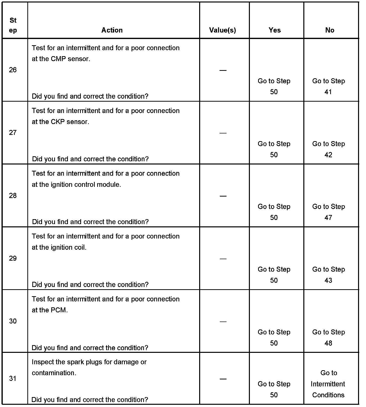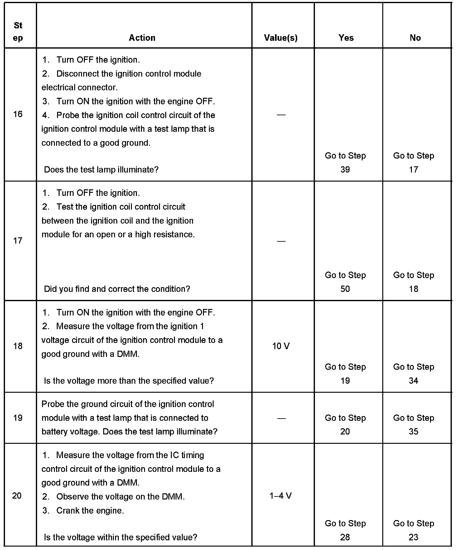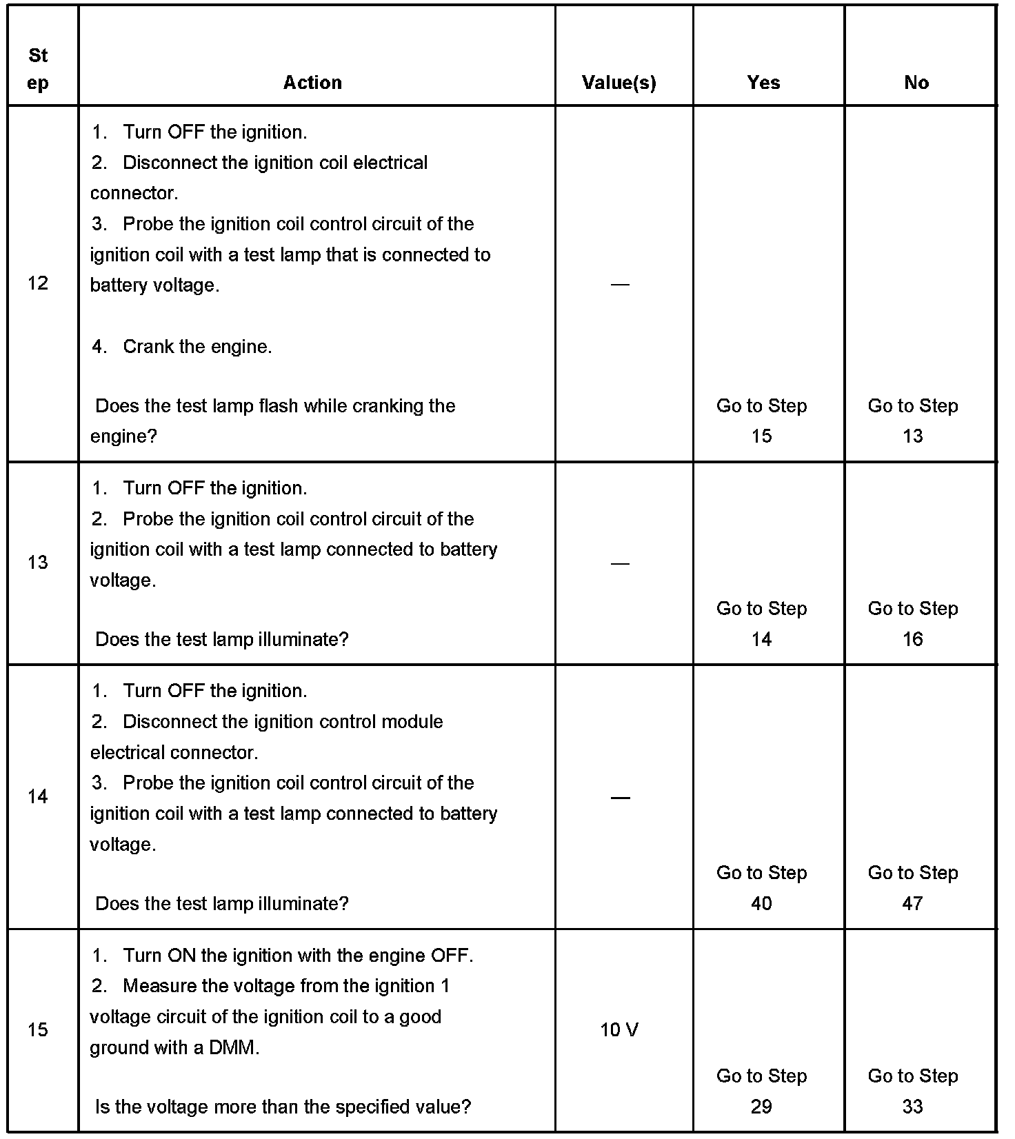 The Distributor Ignition (DI) System Diagnostic Table assumes the following conditions: