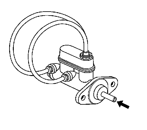 7. Using a smooth, round-ended tool, depress and release the primary piston as far as it will travel, a depth of about 25 mm (1 inch), several times. Observe the flow of fluid coming from the ports.As air is bled from the primary and secondary pistons, the effort required to depress the primary piston will increase and the amount of travel will decrease.
