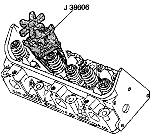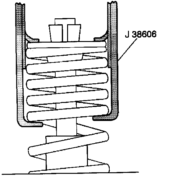4. Compress the valve spring with the J 38606.
