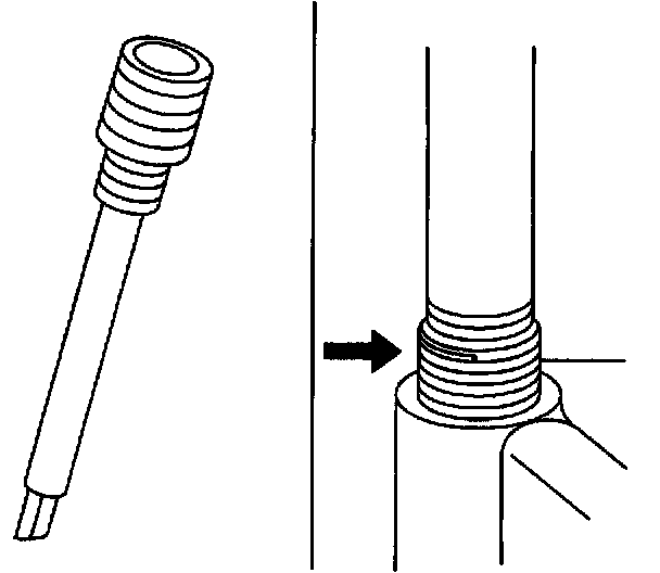 8. Screw the thread insert onto the mandrel of the thread insert installer. Engage the tang of the thread insert onto the end of the mandrel.