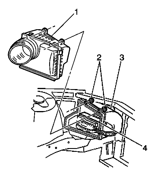 2. Install the PCM (4) with the wiring harness to the air cleaner housing (3).
