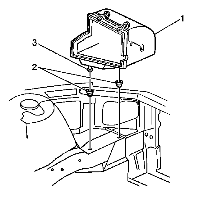 1. Install the air cleaner housing (1) to the 2 rubber grommets (2) in the engine compartment.