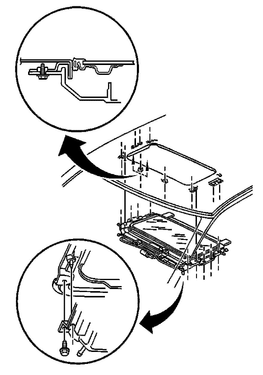 1. Position the sunroof module to the vehicle roof with an assistant.