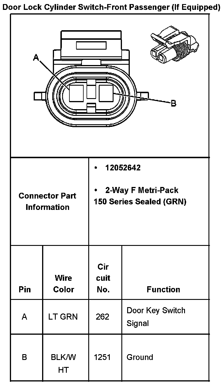 Door Lock Cylinder Switch-Front Passenger (If Equipped):
