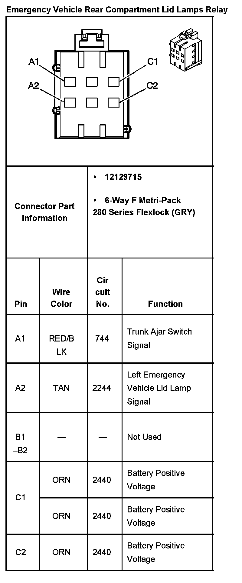 Emergency Vehicle Rear Compartment Lid Lamps Relay: