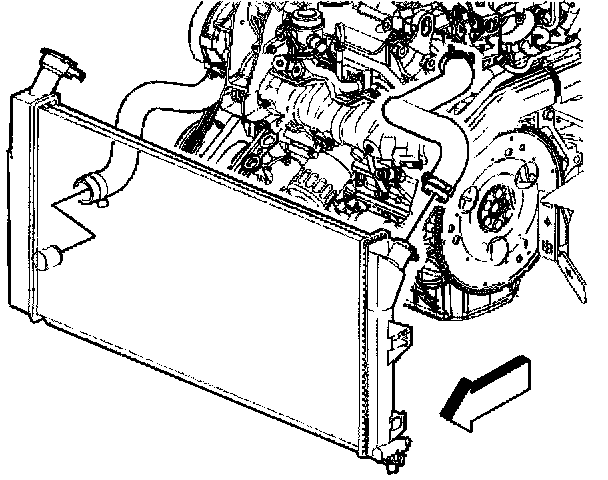 Important: Ensure the lower edge of the fan shroud engages the clip at the bottom of the radiator.