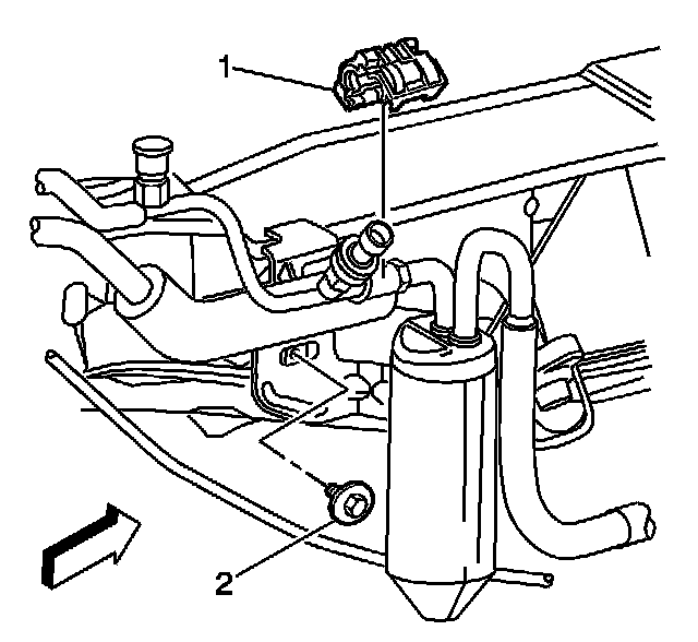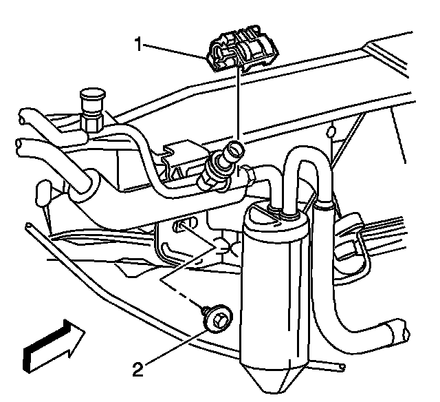 6. Remove the receiver dehydrator mounting bolt (2).