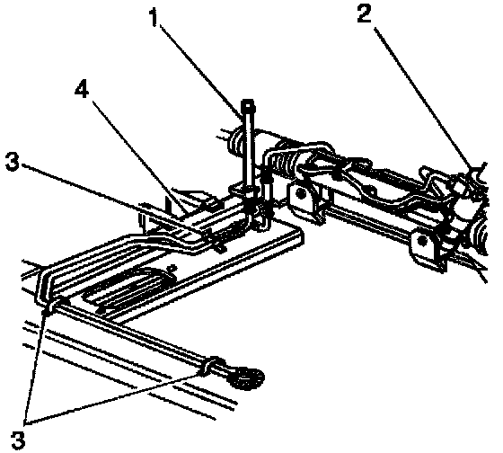 3. Install the return hose (1) to the hose retainers (3) on the cradle (4).