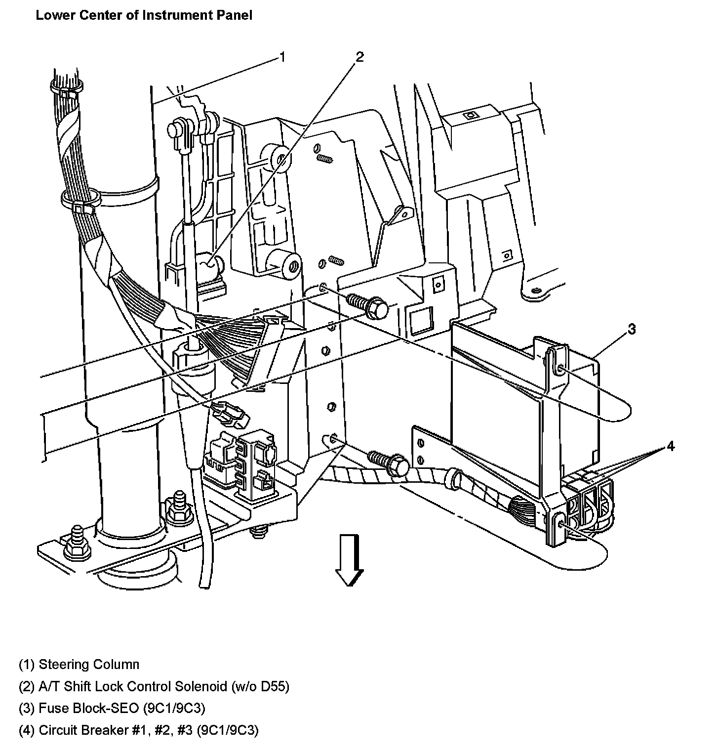 Lower Center Of Instrument Panel:
