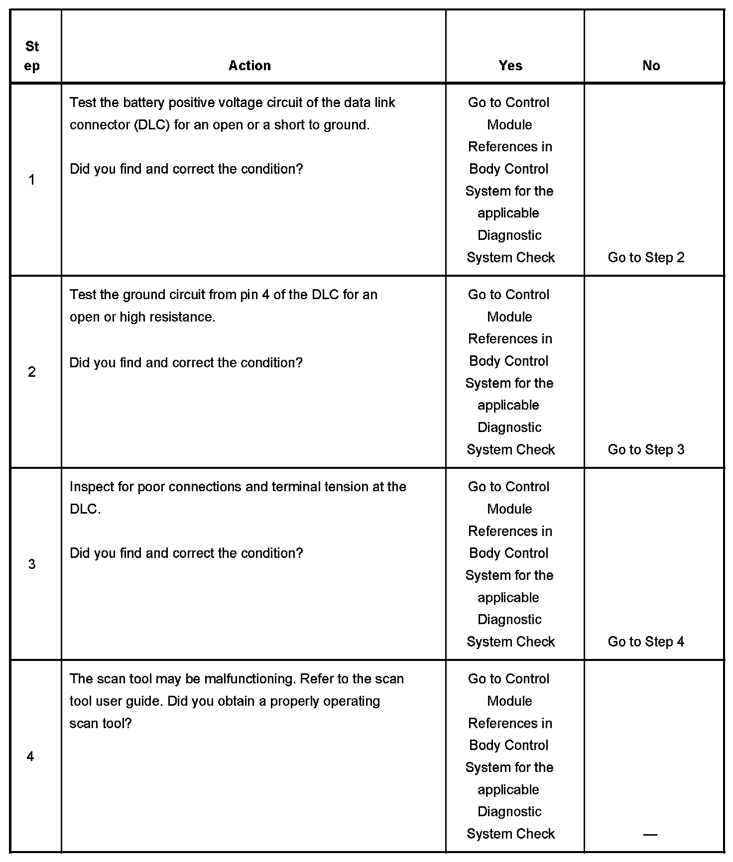 4. If the battery positive voltage and ground circuits of the DLC are functioning properly. The malfunction must be due to the scan tool.