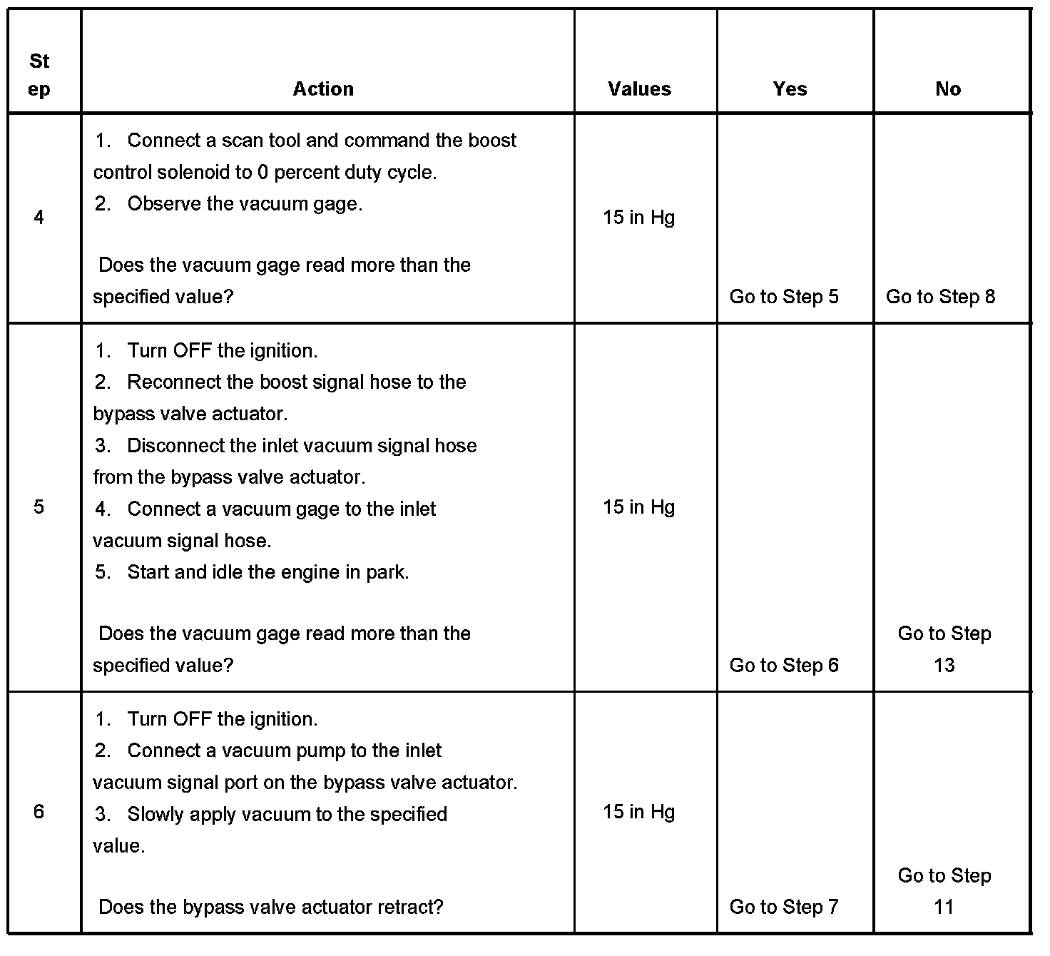 The PCM controls boost pressure by using the boost control solenoid. The boost control solenoid is a normally open valve. Under most conditions, the PCM commands the boost control solenoid to operate at a 100% duty cycle. This keeps the solenoid valve closed and allows only inlet vacuum to control the position of the bypass valve. At idle, engine vacuum is applied to the upper side of the bypass valve actuator, counteracting spring tension to hold the bypass open. As engine load is increased, engine vacuum is decreased, causing the spring in the bypass valve actuator to overcome the applied vacuum, closing the bypass valve and allowing the boost pressure to increase. When reduced boost pressure is desired, the PCM commands the boost control solenoid to operate at a 0 percent duty cycle. This opens the solenoid valve and allows boost pressure to enter the bypass valve actuator at the lower side to counteract the spring tension, opening the bypass valve and recirculating excess boost pressure back into the supercharger inlet.
