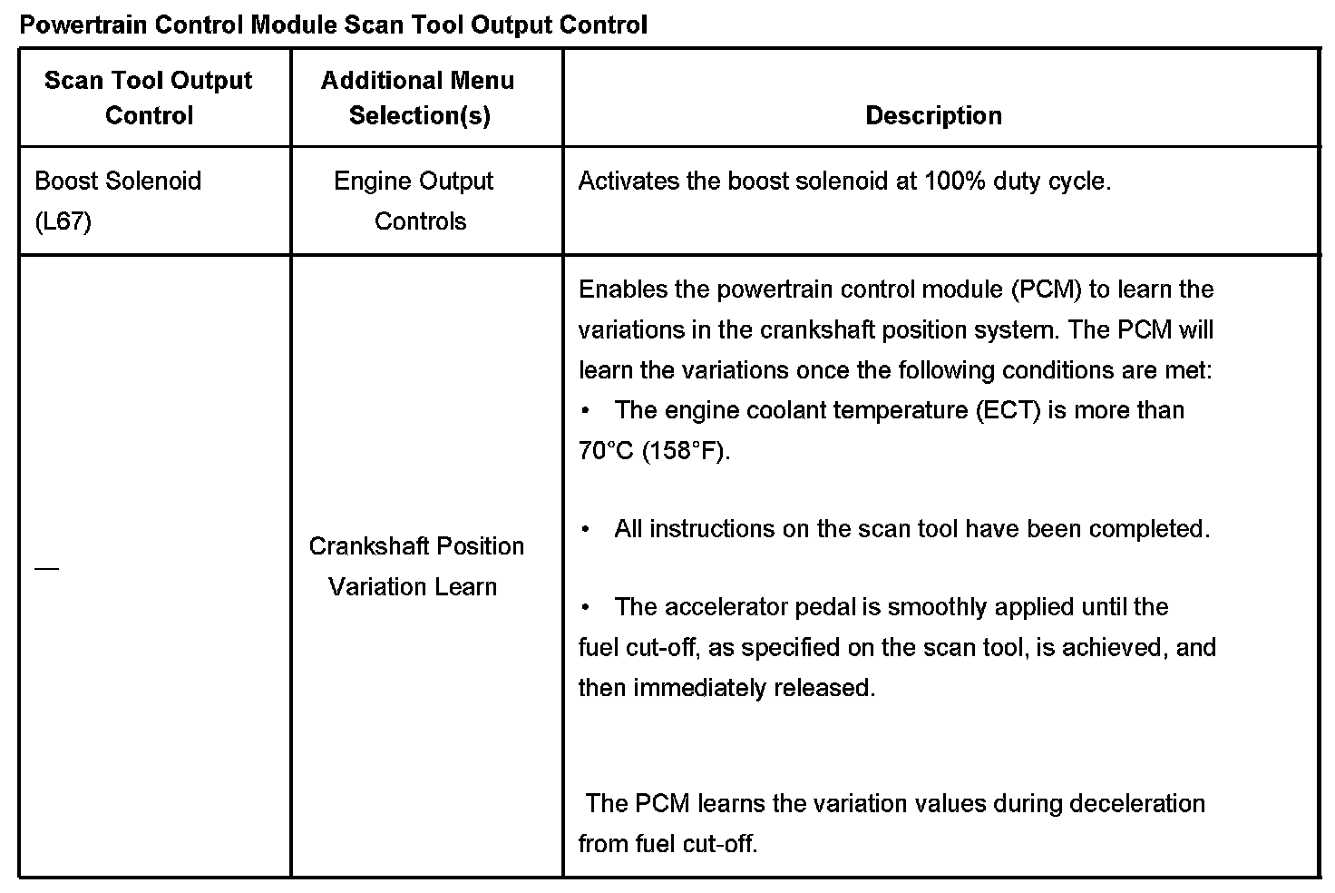 Powertrain Control Module Scan Tool Output Control Part 3: