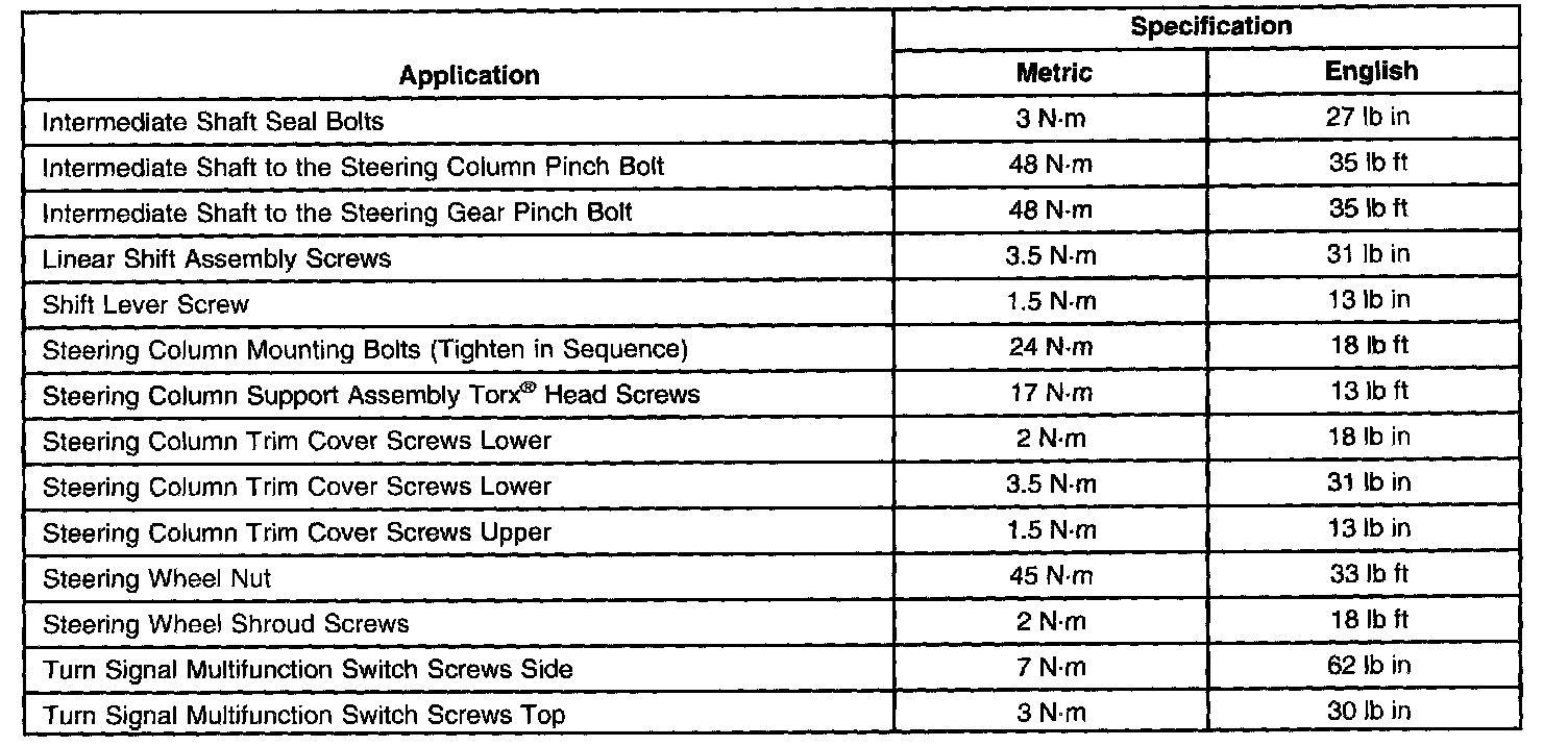 Fastener Tightening Specifications: