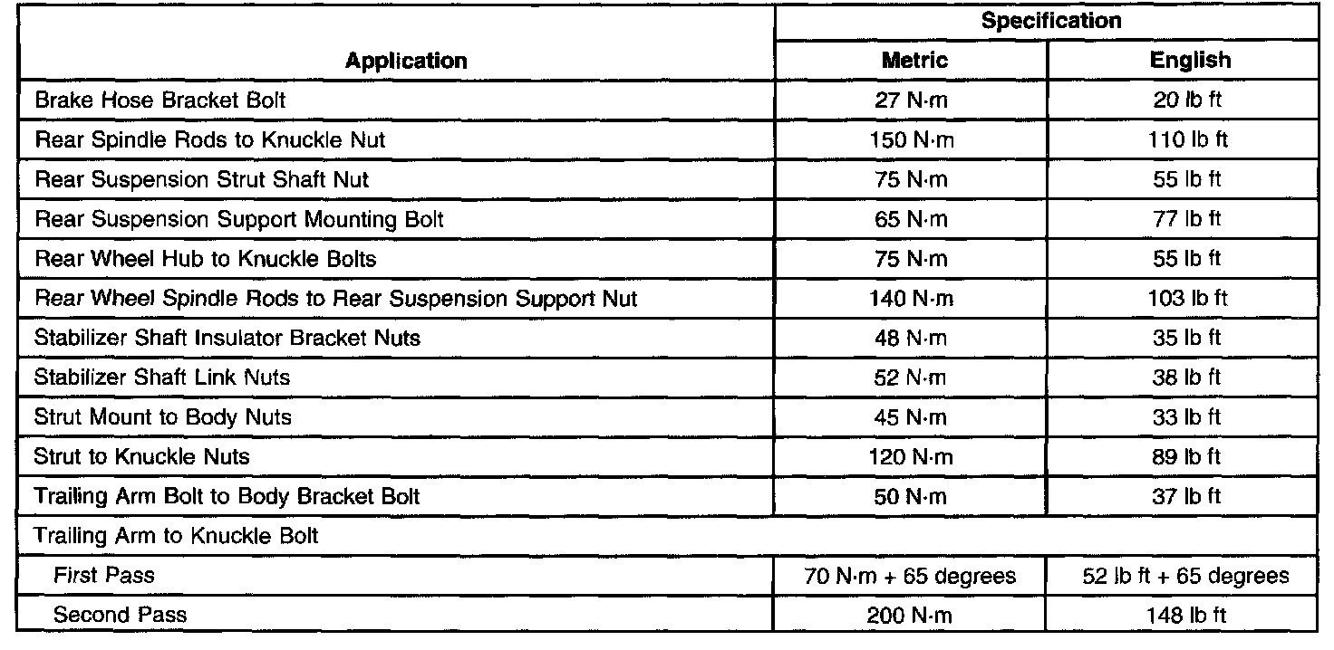 Rear Fastener Tightening Specifications: