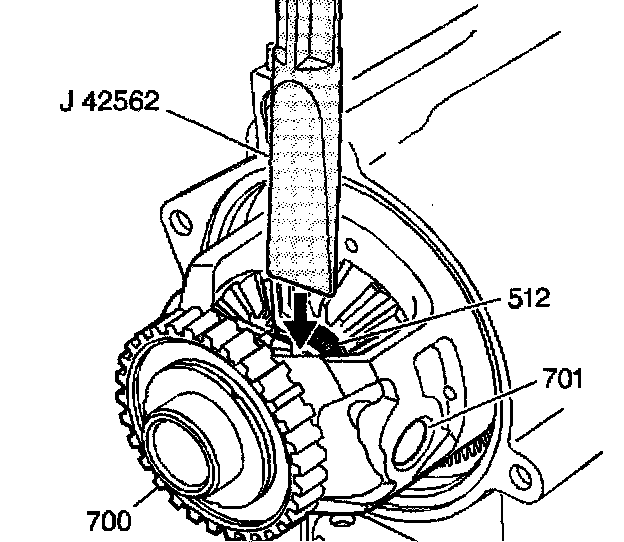 4. Place the J 42562 between the end of the output shaft and the differential pinion shaft.