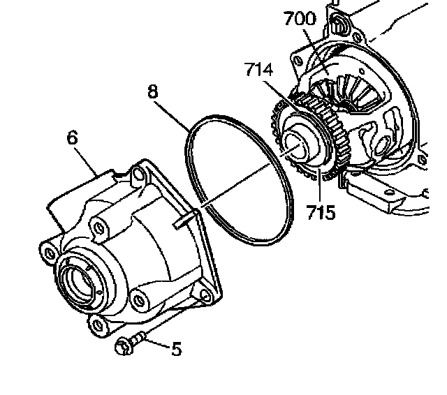 7. Remove the case extension housing (6) with the axle seal and the O-ring (8).