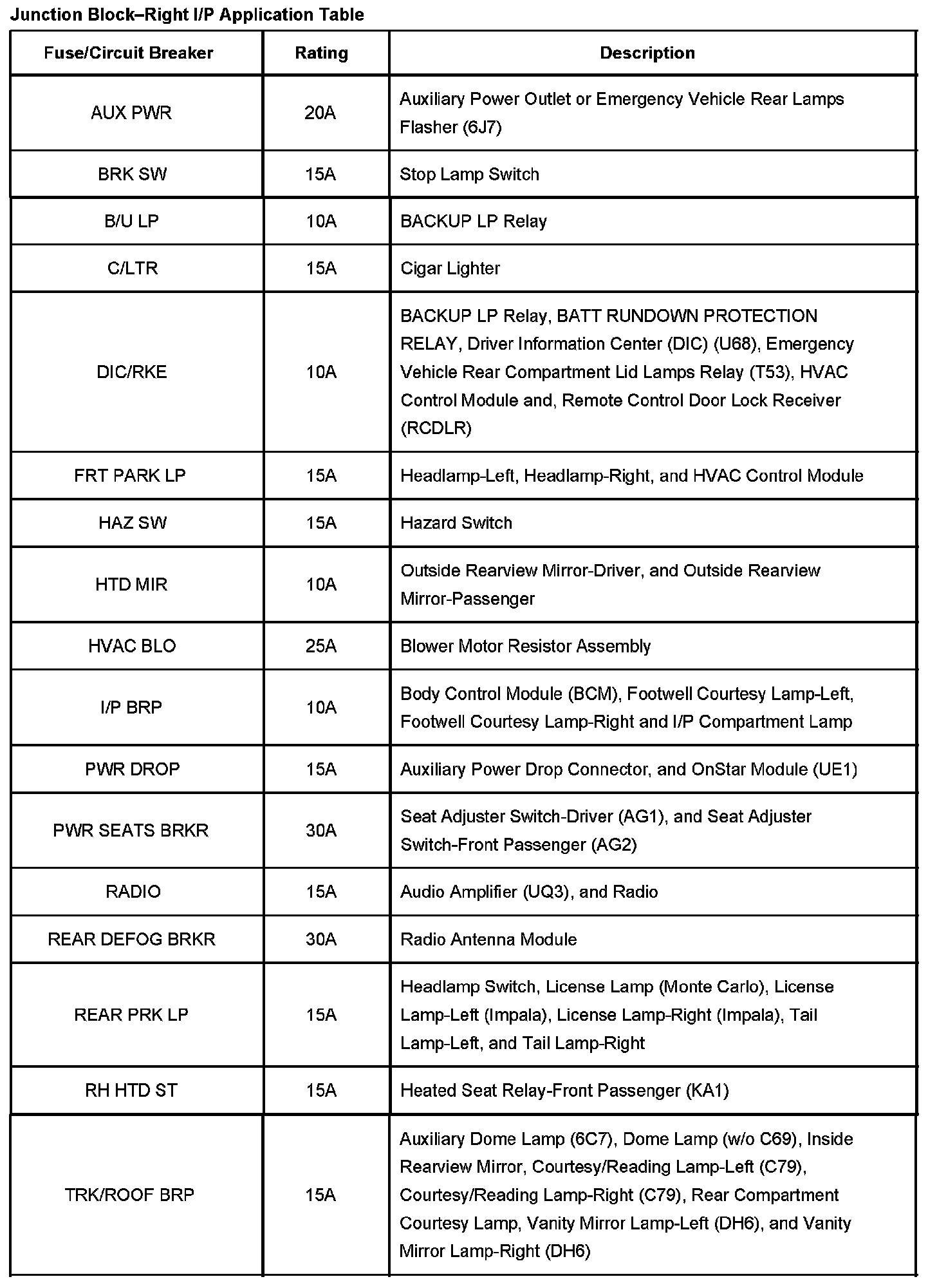 Impala V6-3.8L VIN K