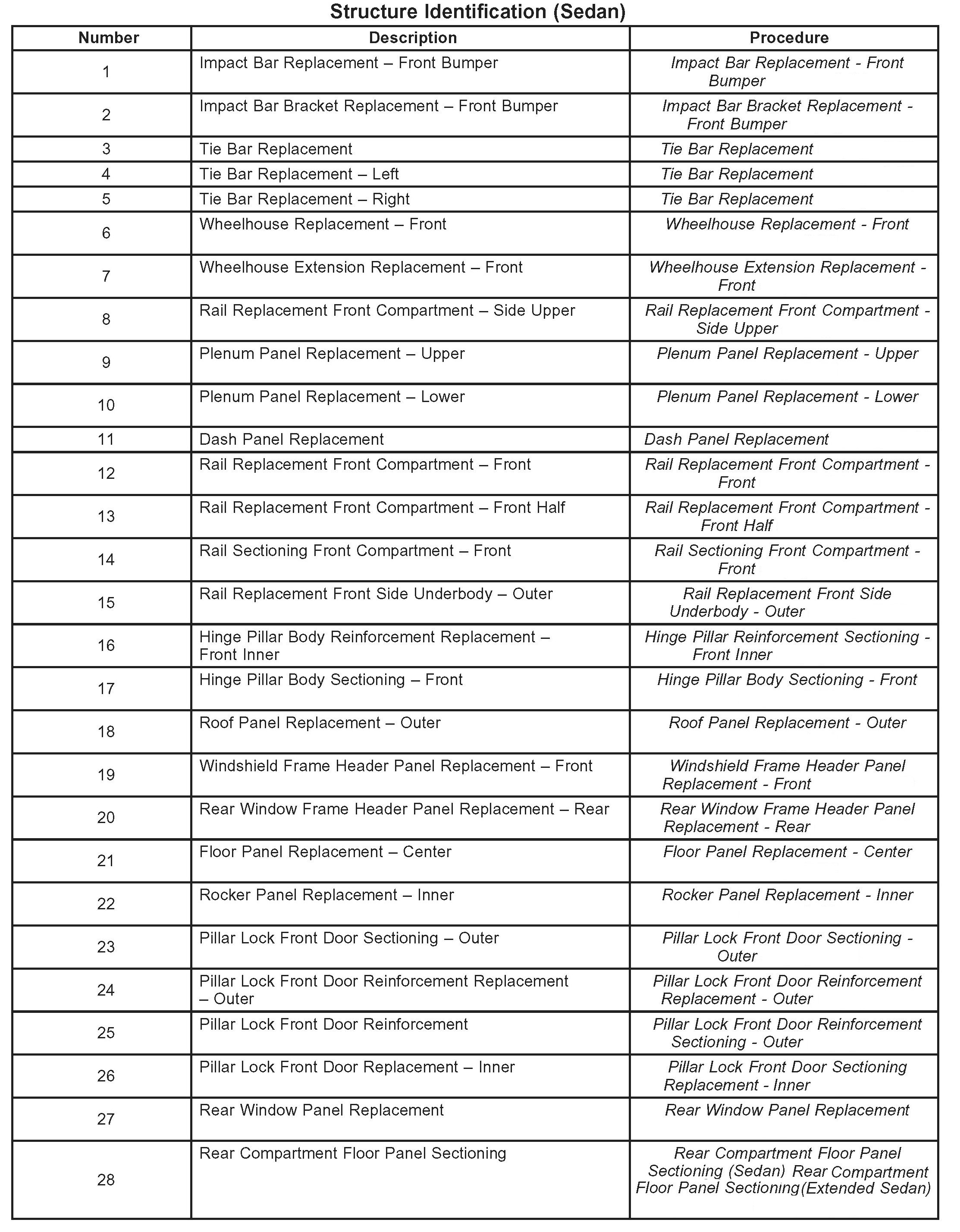Structure Identification (Sedan)