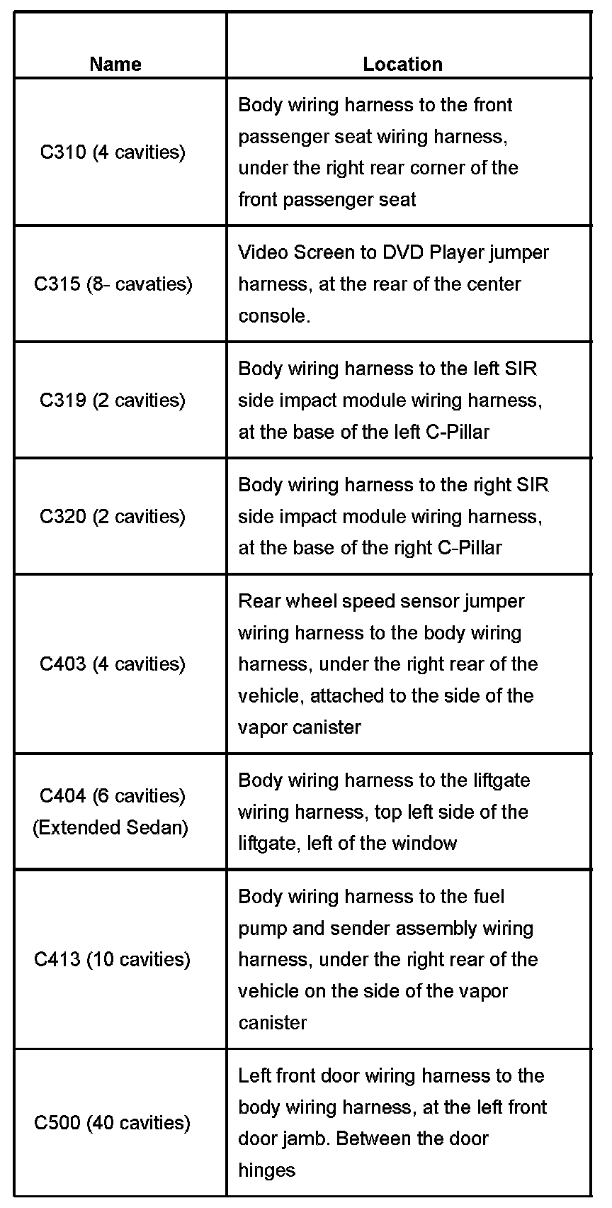 Master Connector List