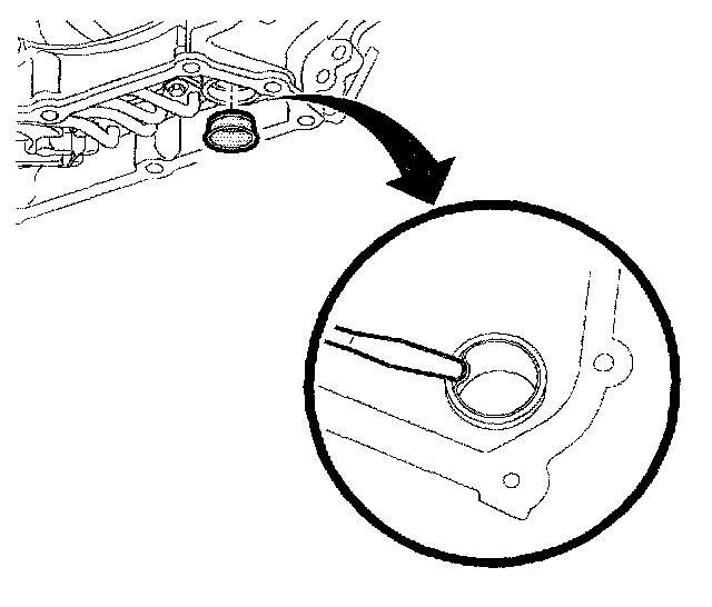 13. Remove the filter neck seal from the transaxle case and discard.