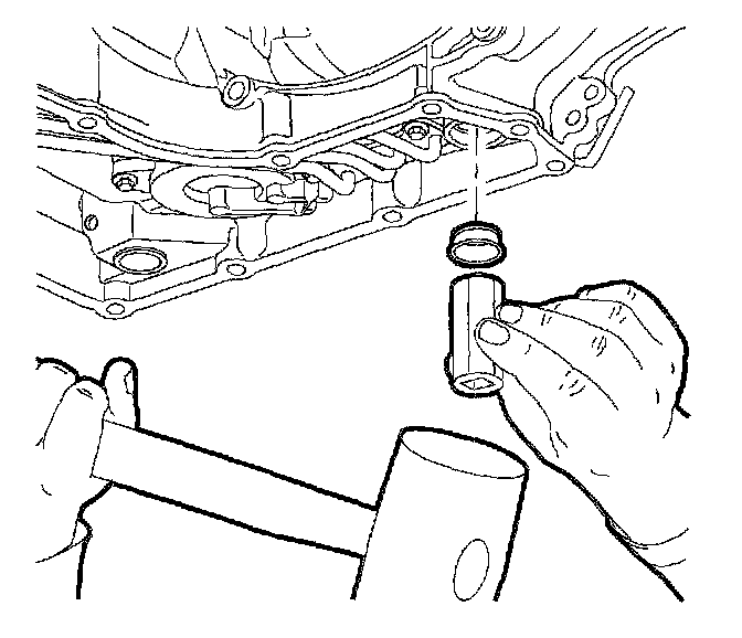 Notice: Pry the oil pan carefully in order to prevent damage to the transaxle case or the oil pan sealing surfaces.