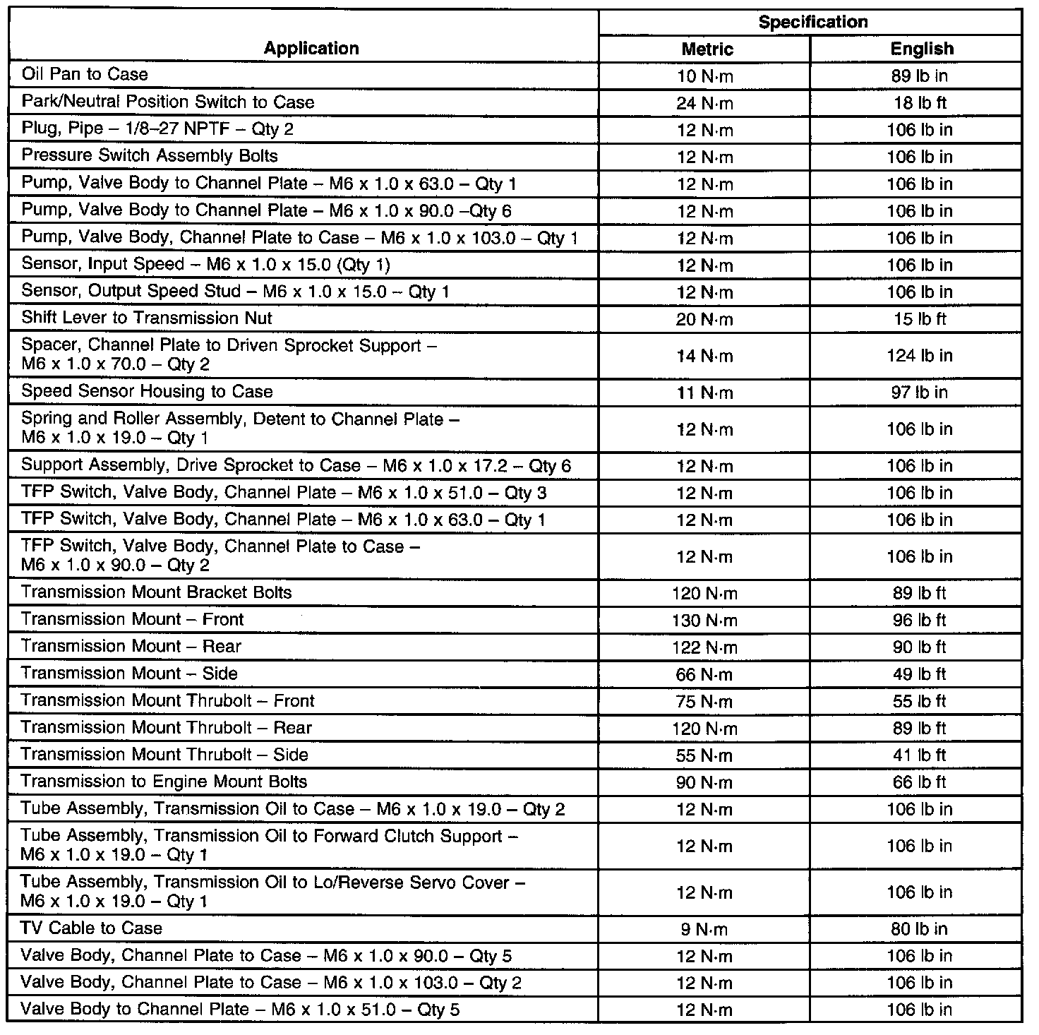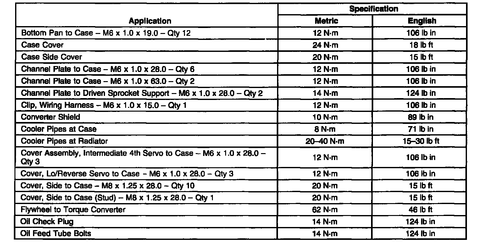 Fastener Tightening Specifications