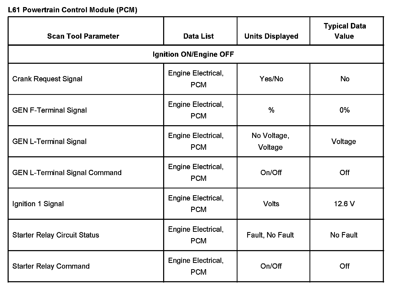 Scan Tool Data List - Powertrain Control Module (PCM)