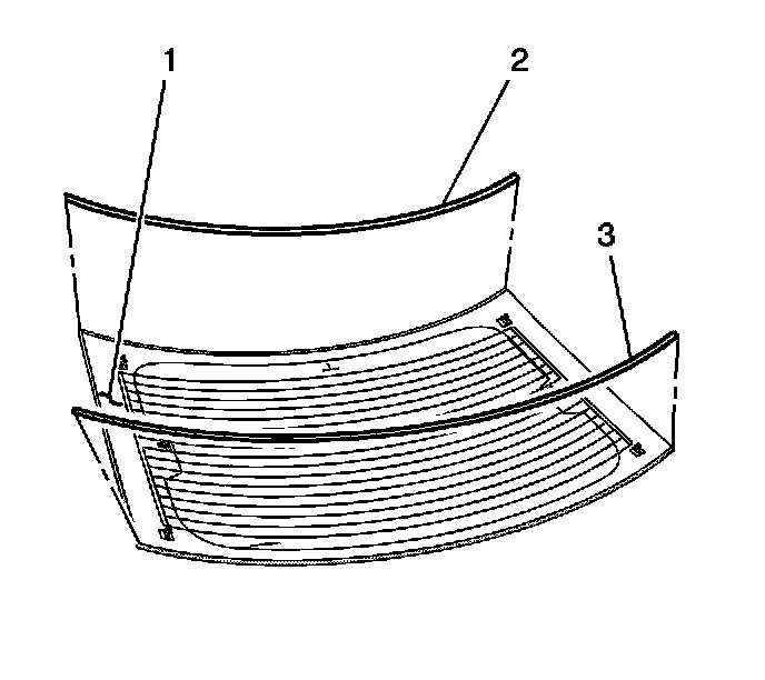 Important: The upper (2) and lower (3) liftgate window reveal moldings fill the cavities between the liftgate and the liftgate window (1).
