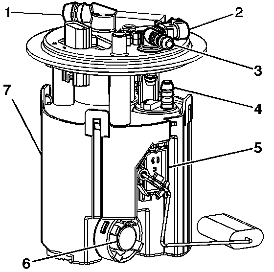 The fuel sender assembly consists of the following major components: