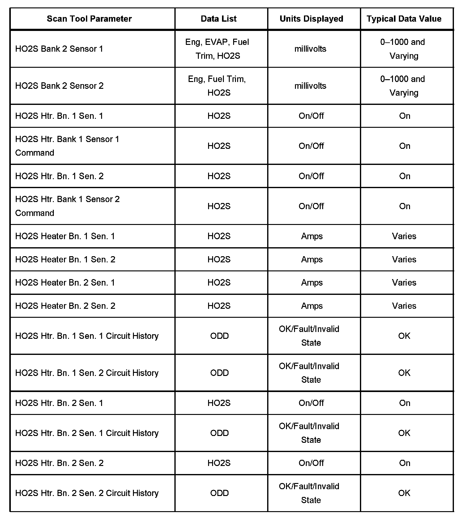The scan tool values from a properly running engine may be used for comparison with the engine you are diagnosing. The Engine Scan Tool Data List represents values that would be seen on a normally running engine.