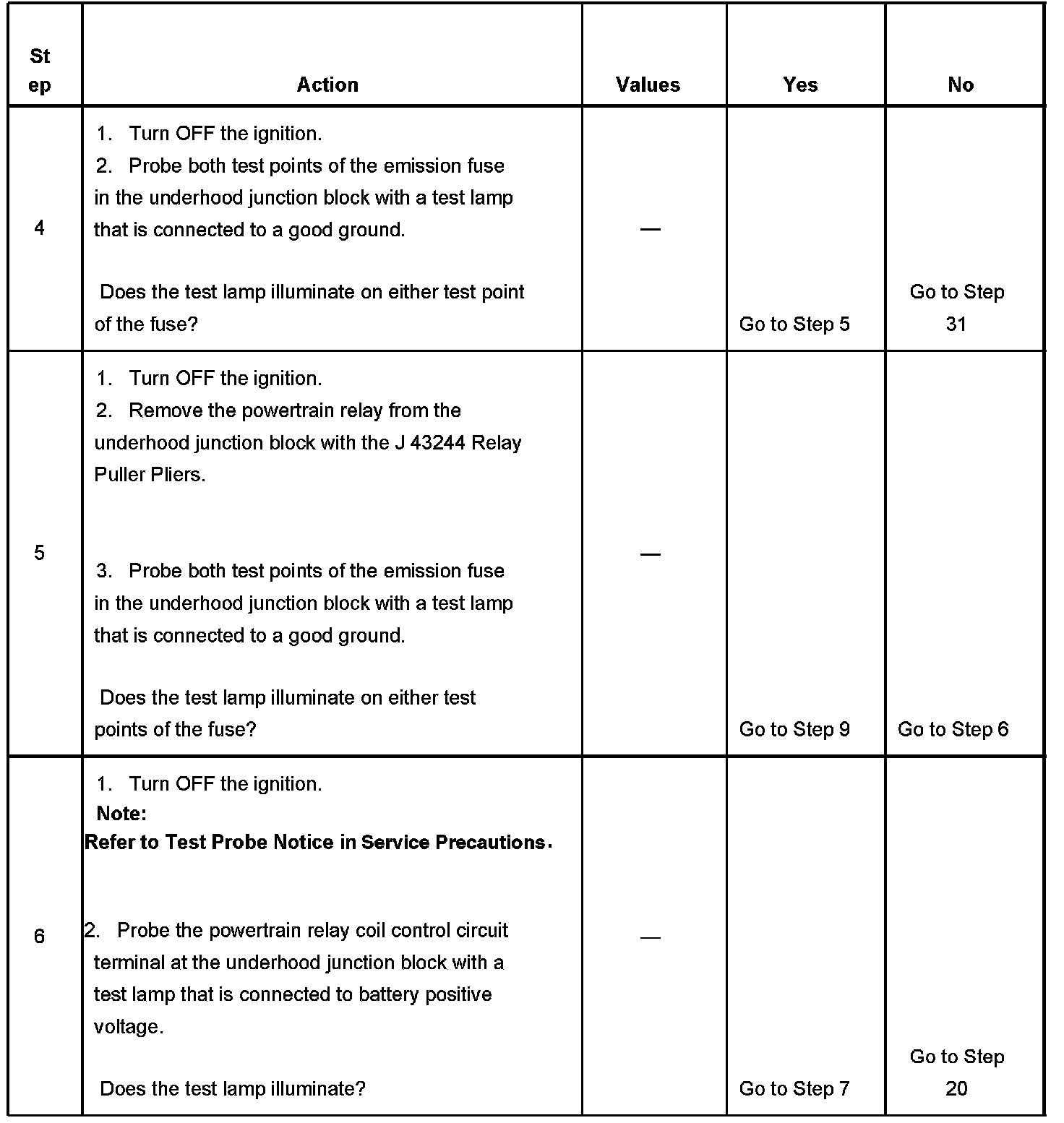 The powertrain relay system diagnosis table assumes that the vehicle battery is fully charged.