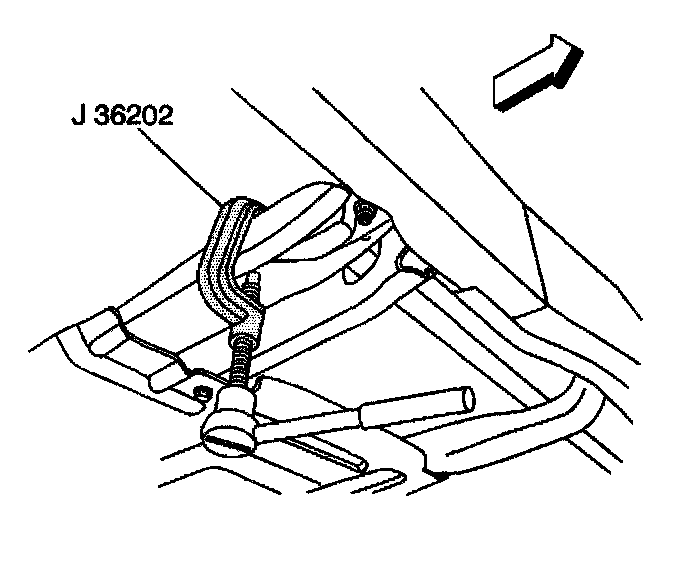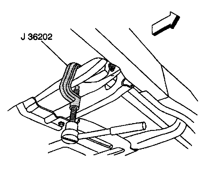 3. Install J 36202 to the adjustment arm and the crossmember.
