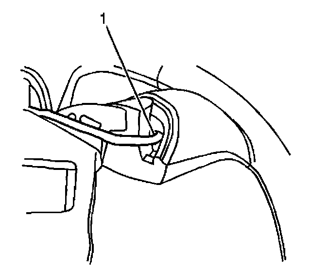 4. Position a blunt ended tool into the wire harness cavity (1) and apply moderate pressure in order to partially remove the steering wheel control switch from the steering wheel.