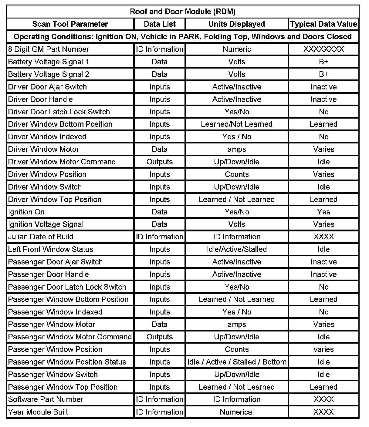Scan Tool Data List