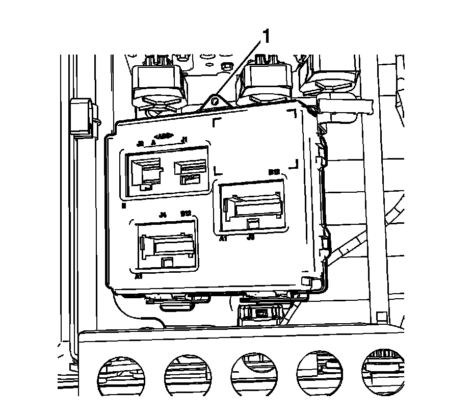 3. Remove the screw (1) that secures the memory seat control module to the seat.