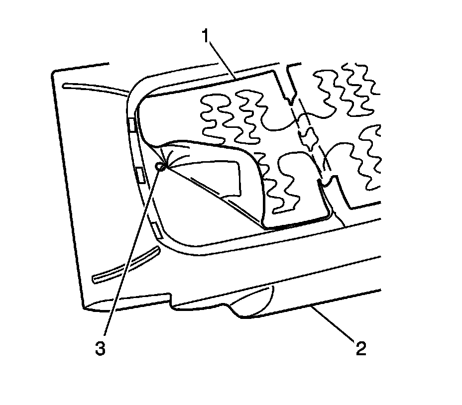 15. Pull the heater element electrical harness through the hole (3) in the pad.