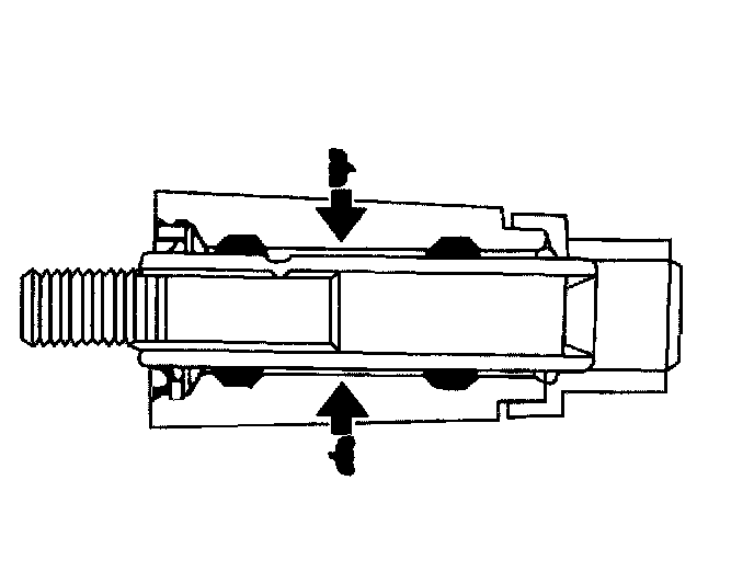4. Install a plug in the front brake caliper hose in order to prevent excessive brake fluid loss and contamination.
