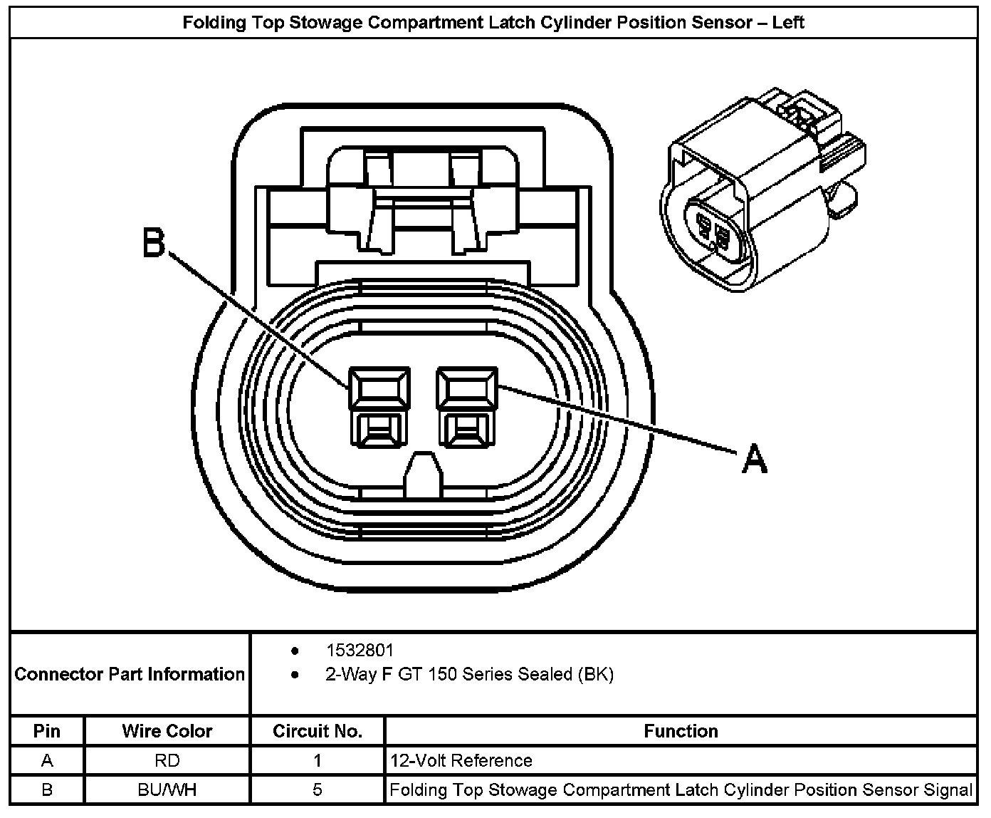 Folding Top Stowage Compartment Latch Cylinder Position Sensor - Left: