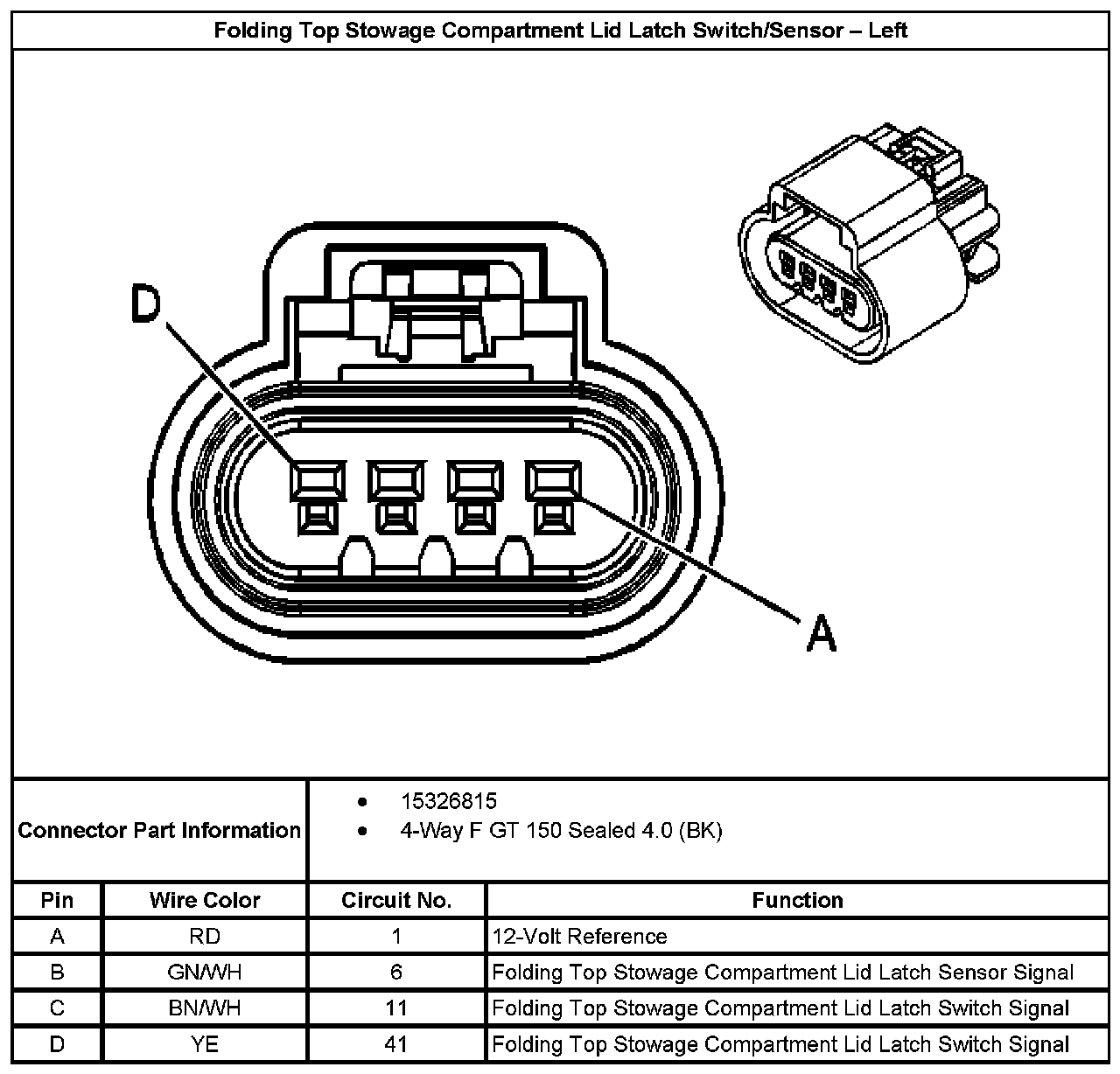 Folding Top Stowage Compartment Lid Latch Switch/Sensor - Left: