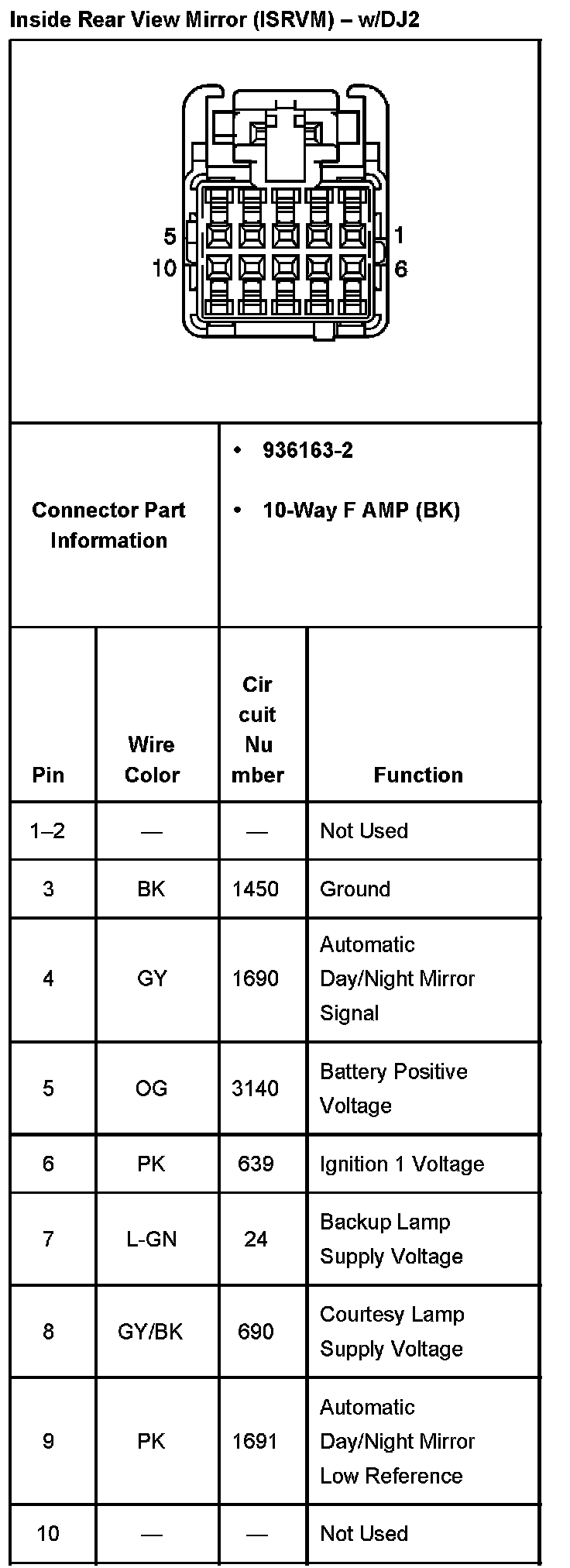 Inside Rear View Mirror (ISRVM) - Without RPO Code DJ2: