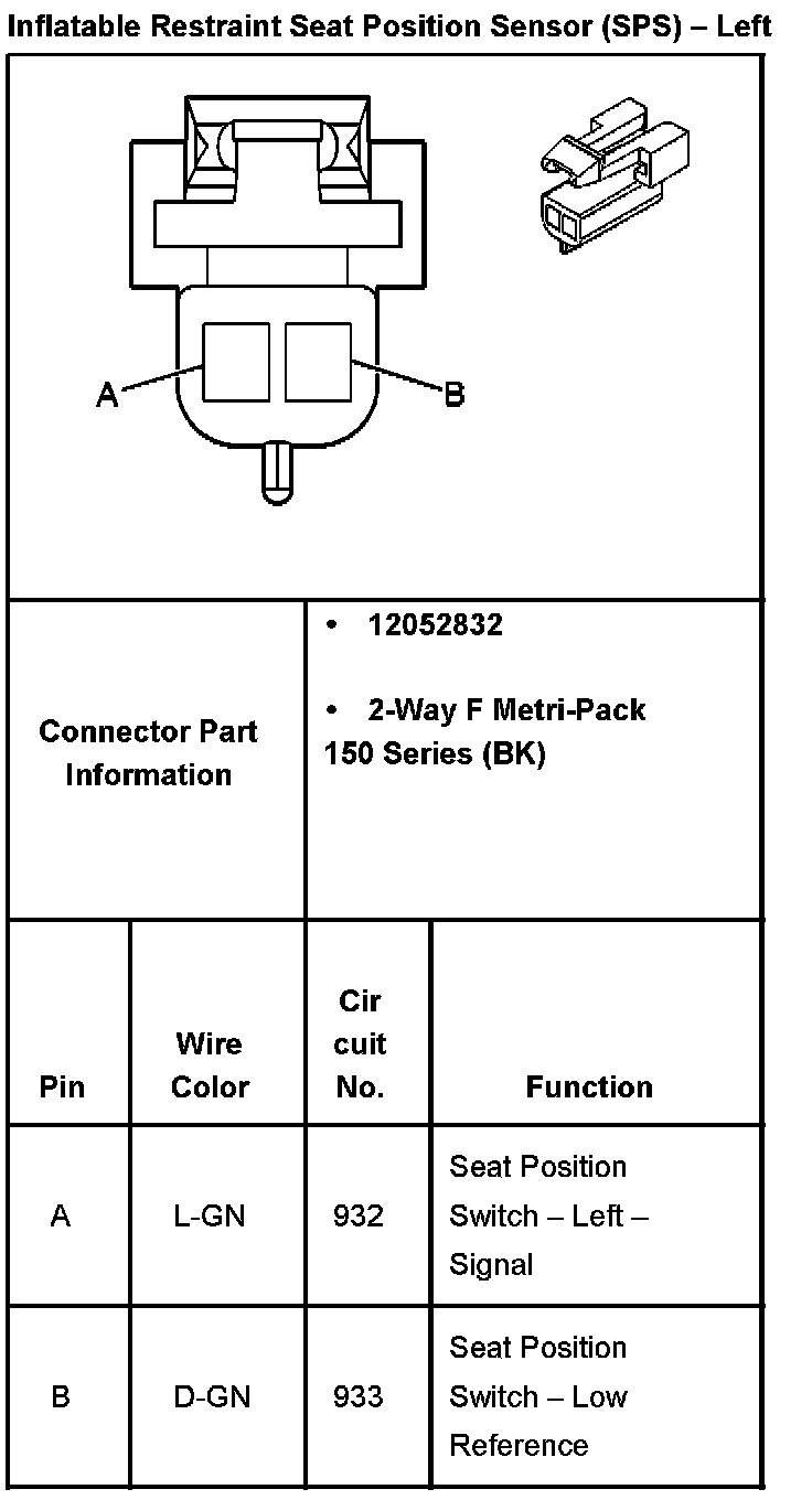 Inflatable Restraint Seat Position Sensor (SPS)-Left: