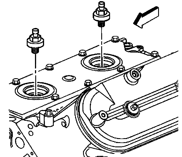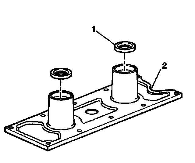 2. Install the knock sensor oil seals (1) into the engine valley cover (2).