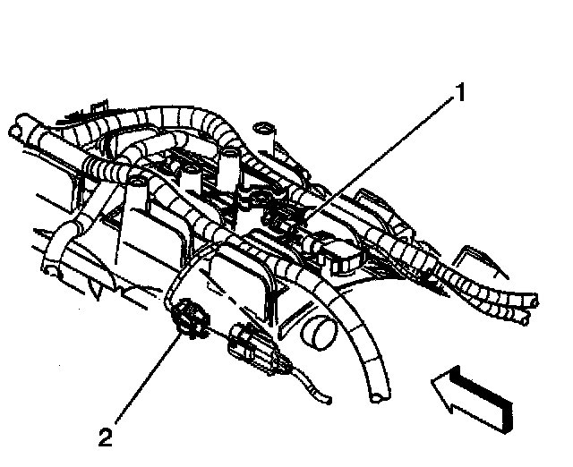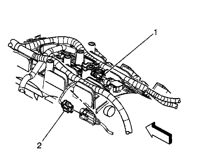 9.1. Remove the EVAP tube end (2) from the solenoid (1).