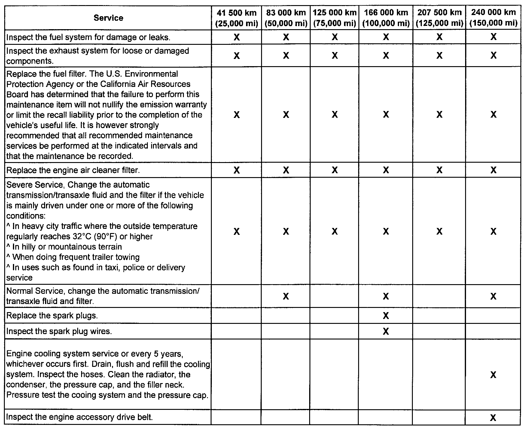 service (I or II) after the indicated miles (kilometers) shown for each item.
