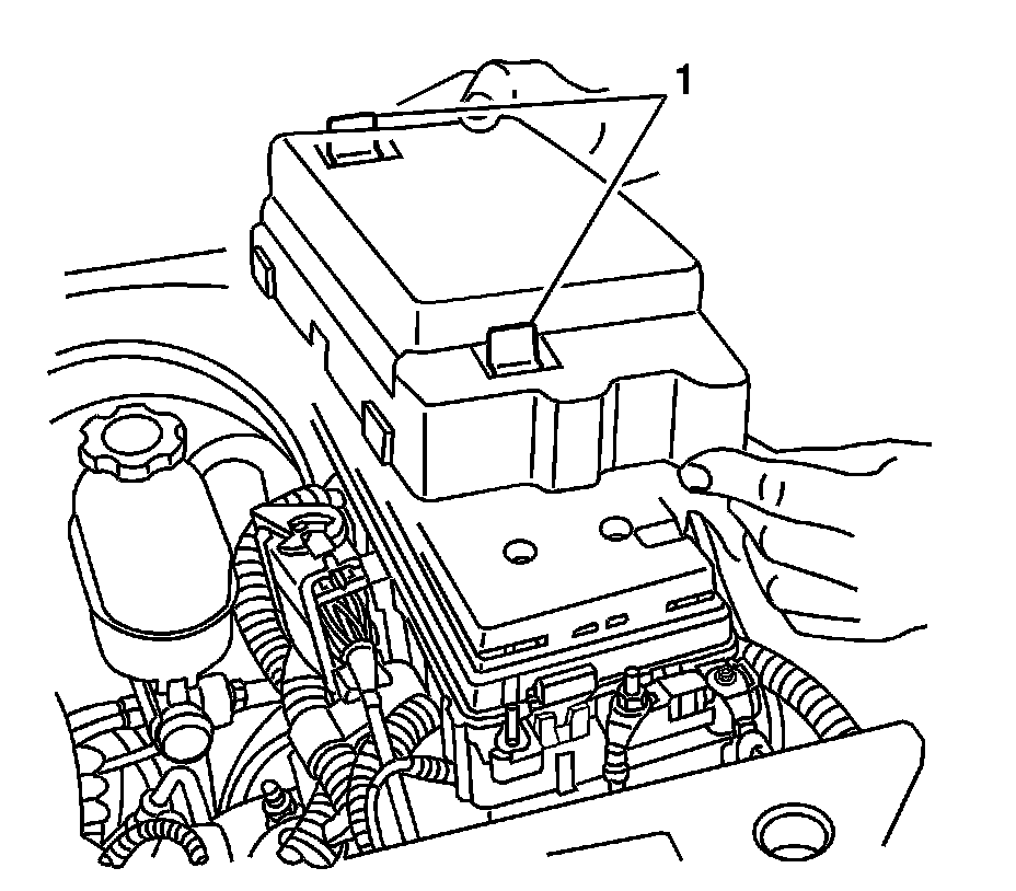 5. Install the fuse relay center cover (1) over the relay center bolts. Press downward to engage the tabs.